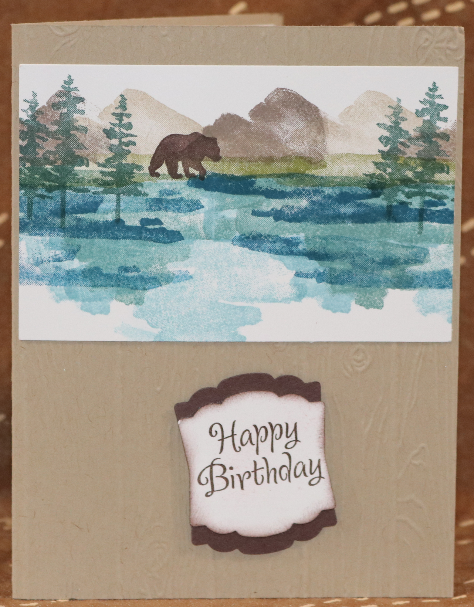 Beige, White, Brown Paper - Pinewood Planks Embossing Folder - Mountain, Trees, Waterfront with bear