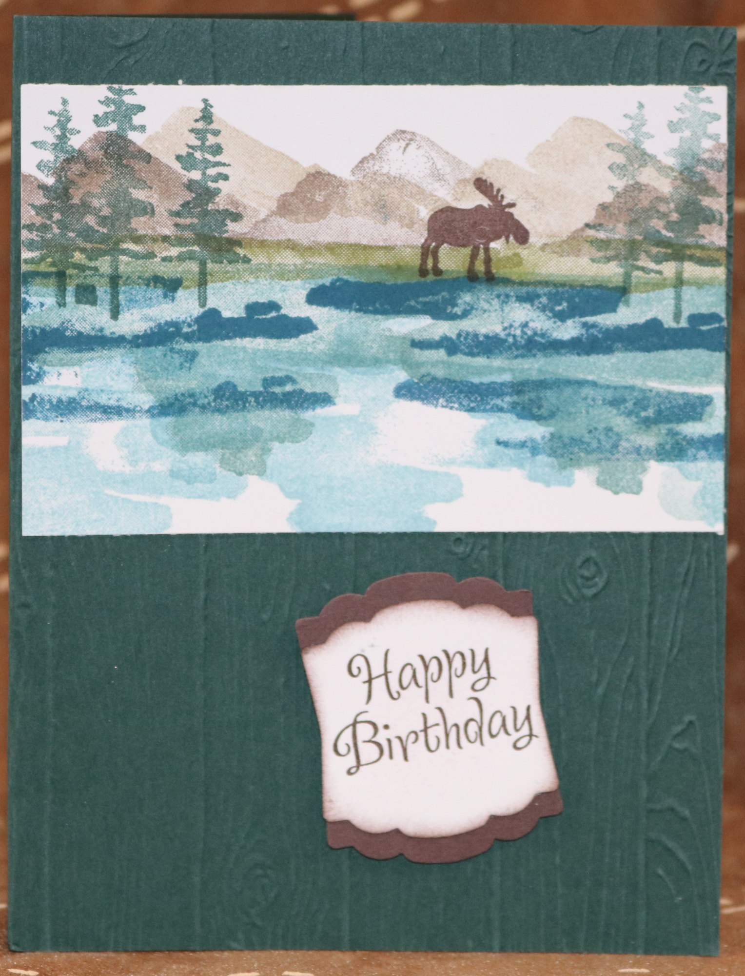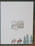 Green, White, Brown Paper - Pinewood Planks Embossing Folder - Mountain, Trees, Waterfront with moose