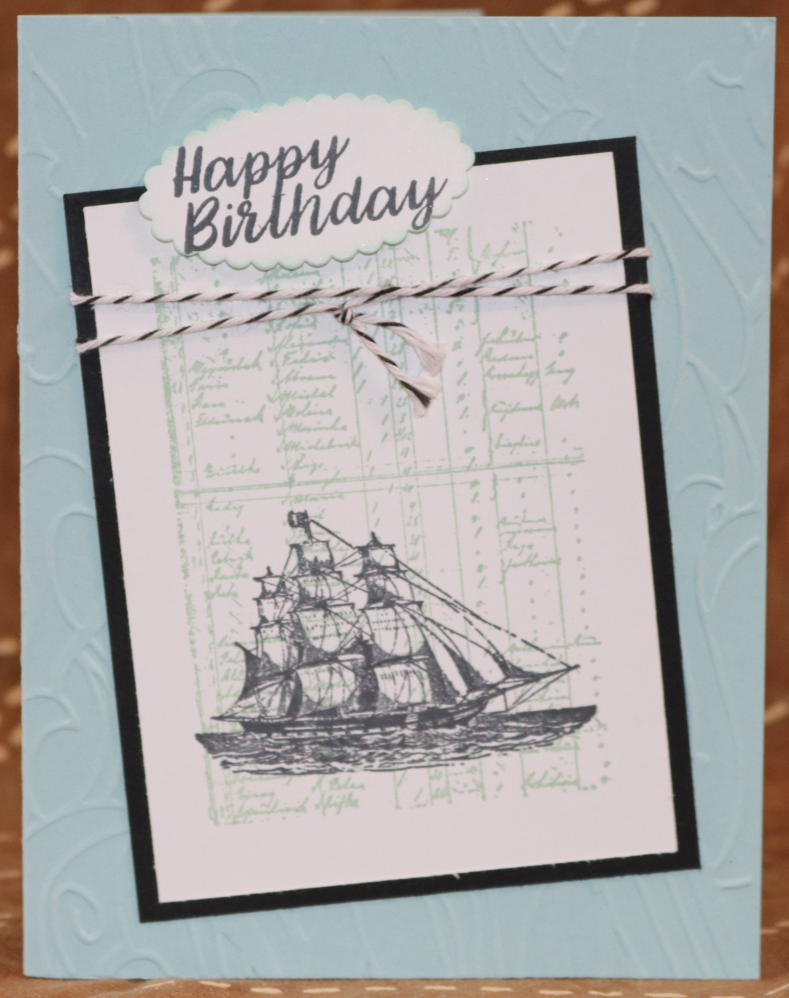 Pool Party/Black/White Paper - Waves Embossing Folder - SU Ship and Map, Pool Party Ink, Black Ink, string