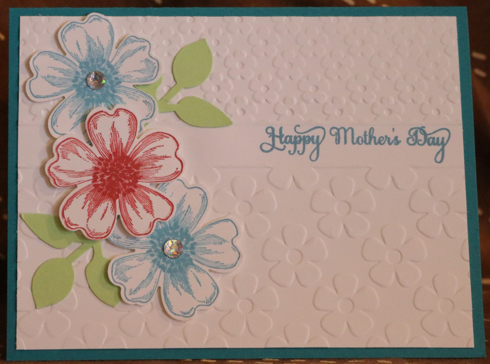 Teal, Light Green and White - Double Embossed with Flowers, Leaves and Rhinestones