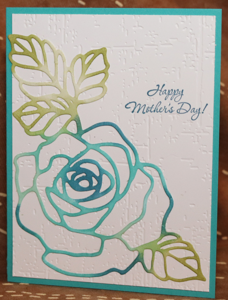 Turquoise, White Papers - Rose sponged with green to blues with Distress Embossing Folder