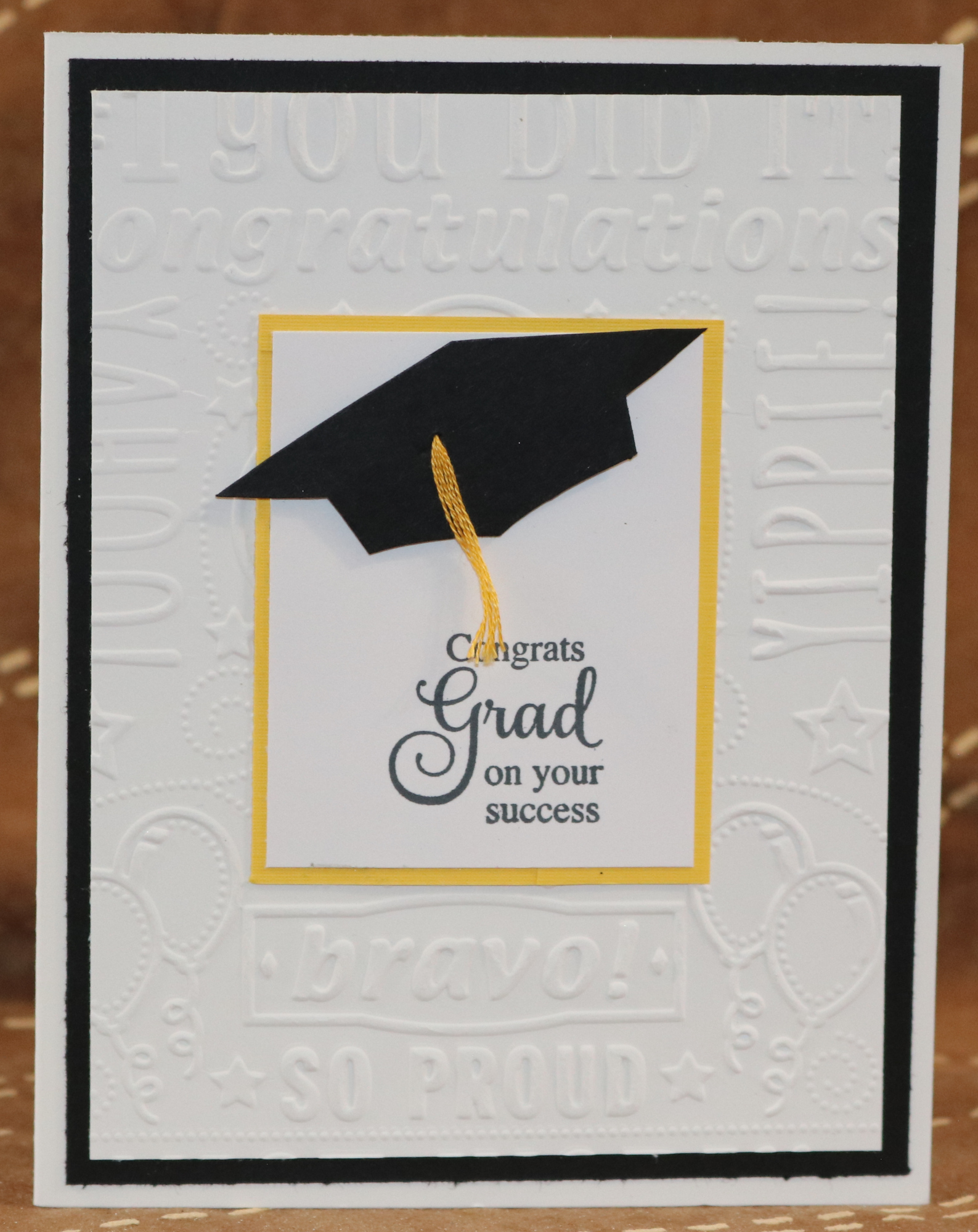 White, Black and Yellow Papers - Congrats Embossing Folder - Hat with tassel