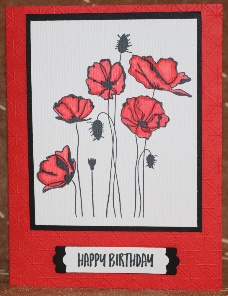 Red, Black, White Papers - Small Poppies colored with markers, diamonds embossing folder
