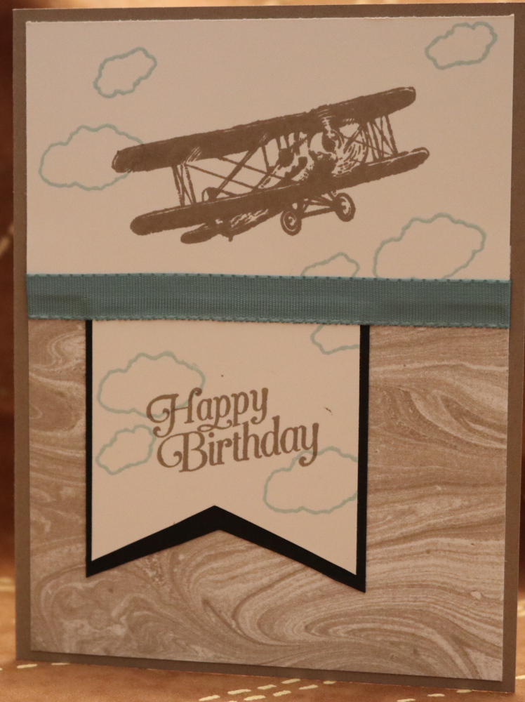 Brown, Black, White and Marbled Papers - Airplane in the clouds, ribbon