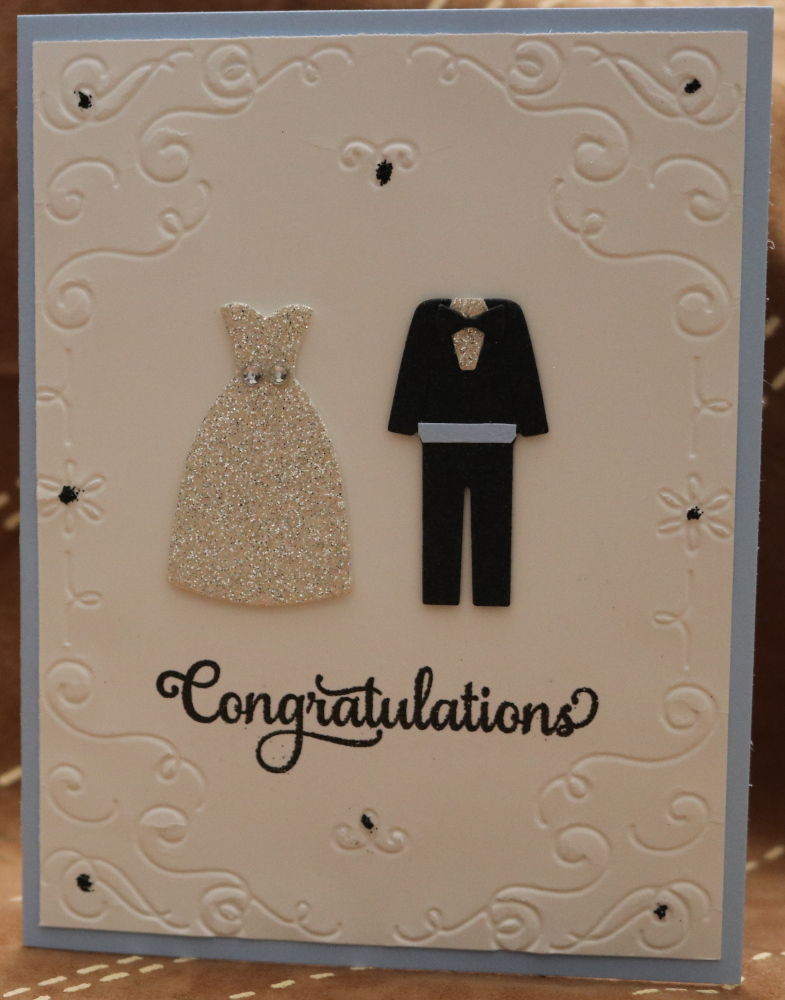 Light Blue, White Paper - Filigree Embossing Folder - Wedding Dress/Black Tuxedo