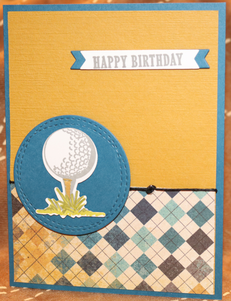 Blue, Gold, White and Plaid Papers - Golf ball on a tee