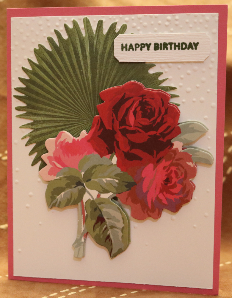 Pink, White Papers - Falling Snow Embossing folder, Rose with Frond Die Cut
