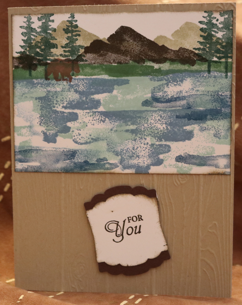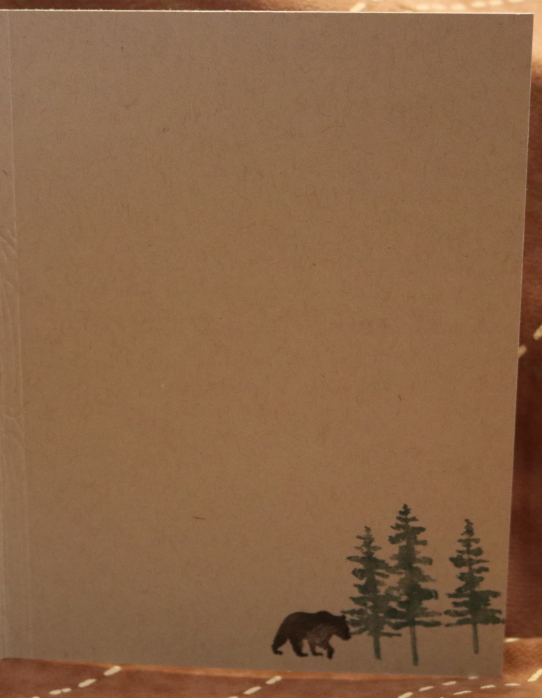 Beige, White, Brown Paper - Pinewood Planks Embossing Folder - Mountain, Trees, Waterfront with bear