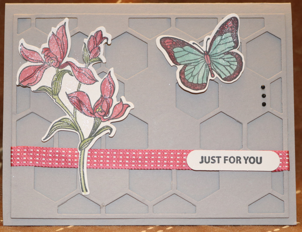Gray and White Papers - Hexagon die cut, flower and butterfly, pink ribbon