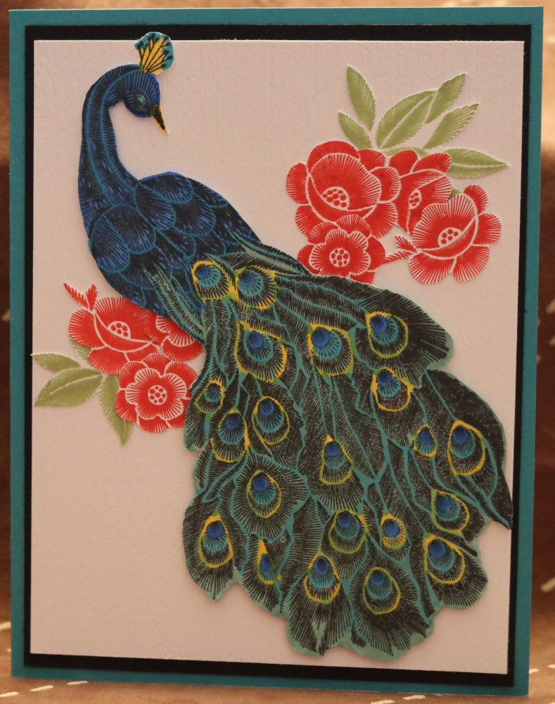 Turquoise Blue, Black, White Papers - Peacock with tropical flowers