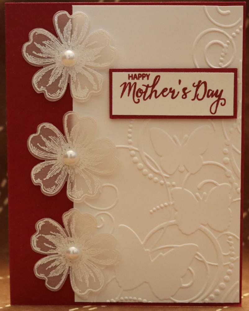 Dark Pink, White, Vellum Papers - White Embossed Flowers on Vellum with a Butterfly corner embossing folder
