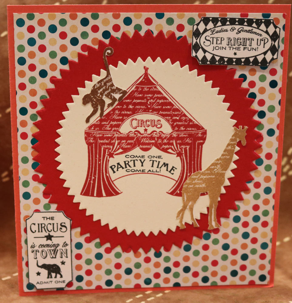 Peach, Red, White, Polka Dot DSP Papers - Circus Tent with Monkey, Giraffe and Tickets