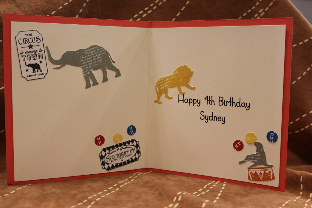 Inside Words - Happy 4th Birthday Sydney, circus animals on both sides