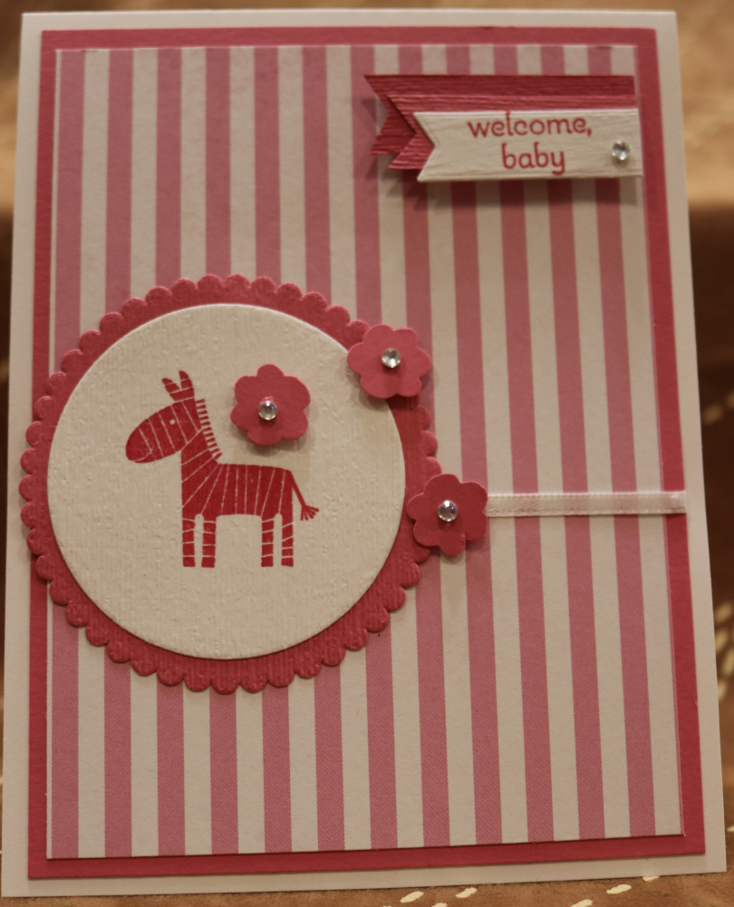 White, Pink, Pink with White Stripes Papers - Zebra in Scalloped Circle, little flowers with rhinestones