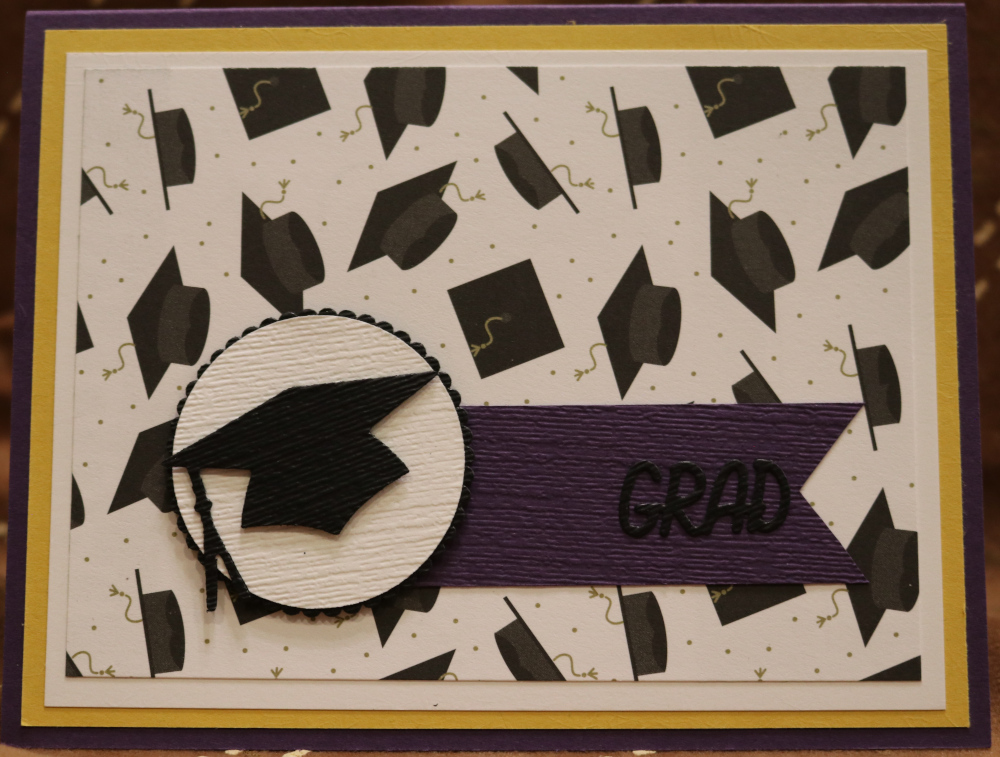 Purple, Gold, White, Black and Graduation DSP Papers - Subtle Embossing Folder - Hat with tassel