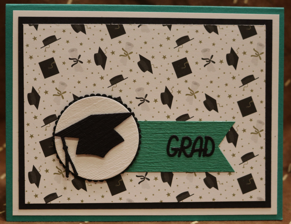 Green, White, Black and Graduation DSP Papers - Subtle Embossing Folder - Hat with tassel
