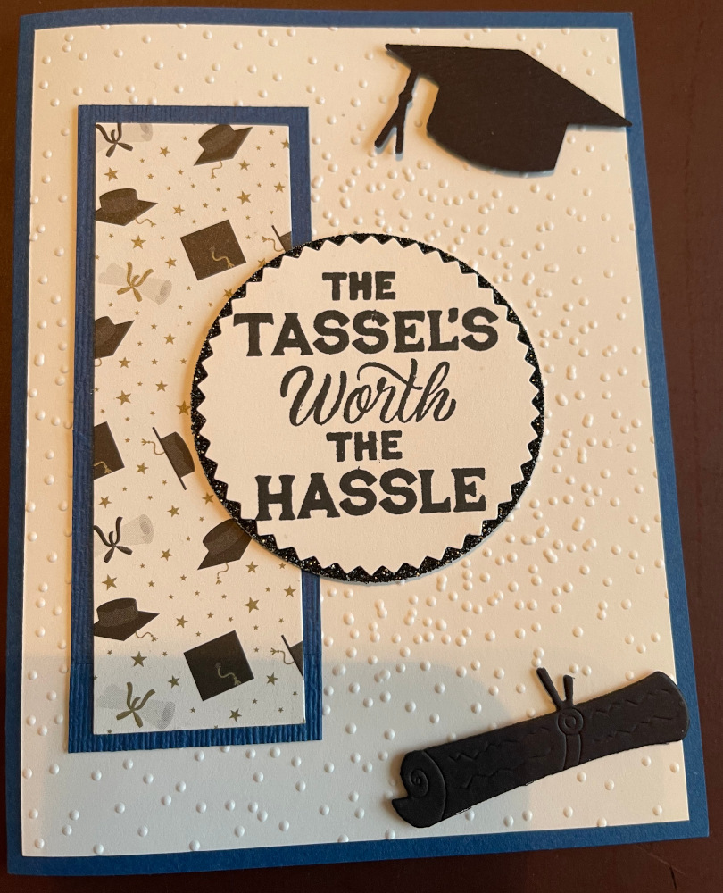Blue, Black, White and Graduation DSP Papers - Confetti Dots Embossing Folder - Hat with tassel and diploma