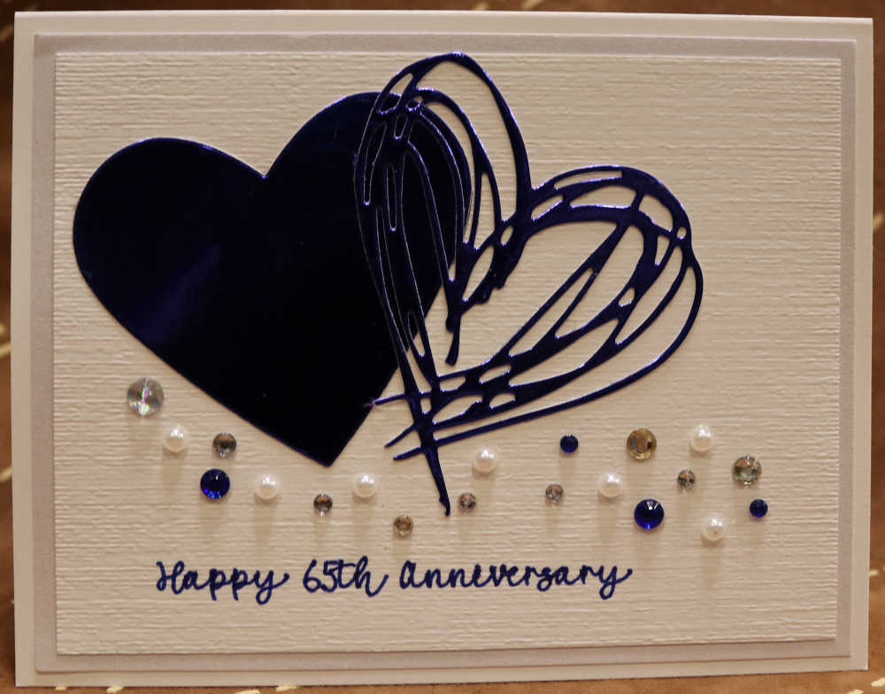 White, White Pearl Shimmer, Shiny Blue Papers - Subtle Embossing Folder - Double Hearts with asst rhinestones and pearls