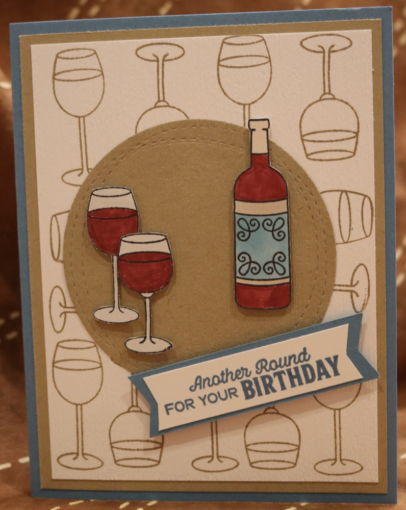 Blue, Beige, White Paper - Wine Glasses Background - Circle with Wine Glasses and Wine Bottle