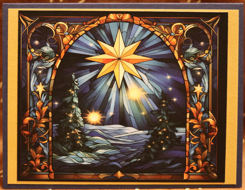 Dark Blue, Gold, White, Stained Glass Northern Star Paper