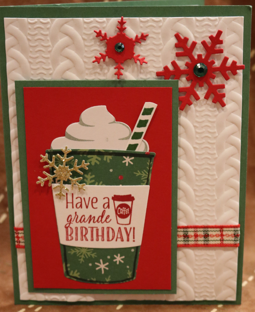Green, Red, White, Snowflake DSP Paper - Cable Knit Embossing Folder - Latte Cup with Foam, straw and snowflakes