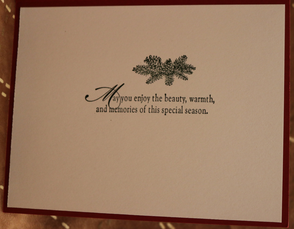 Inside Words - May you enjoy the beauty, warmth, and memories of this special season. pine bough above words