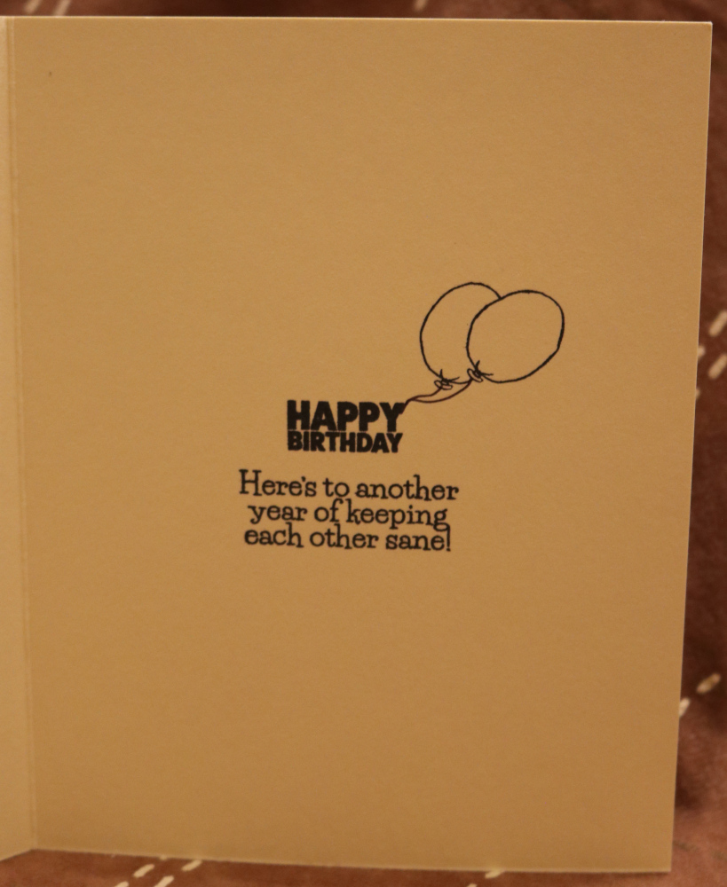 Inside Words - HAPPY BIRTHDAY with balloons, Here's to another year of keeping each other sane!