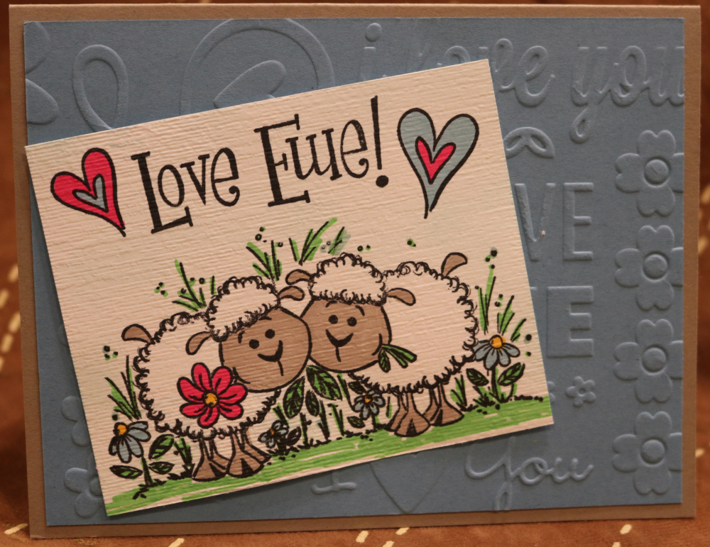 Tan, Blue and White Papers - Valentine and Subtle Embossing Folder - 2 Sheep in the flowers