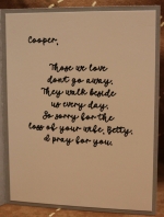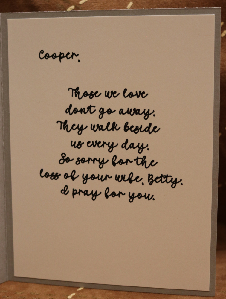 Inside Words -Cooper, Those we love don’t go away. They walk beside us every day. So sorry for the loss of your wife, Betty. I pray for you. printed on Cricut