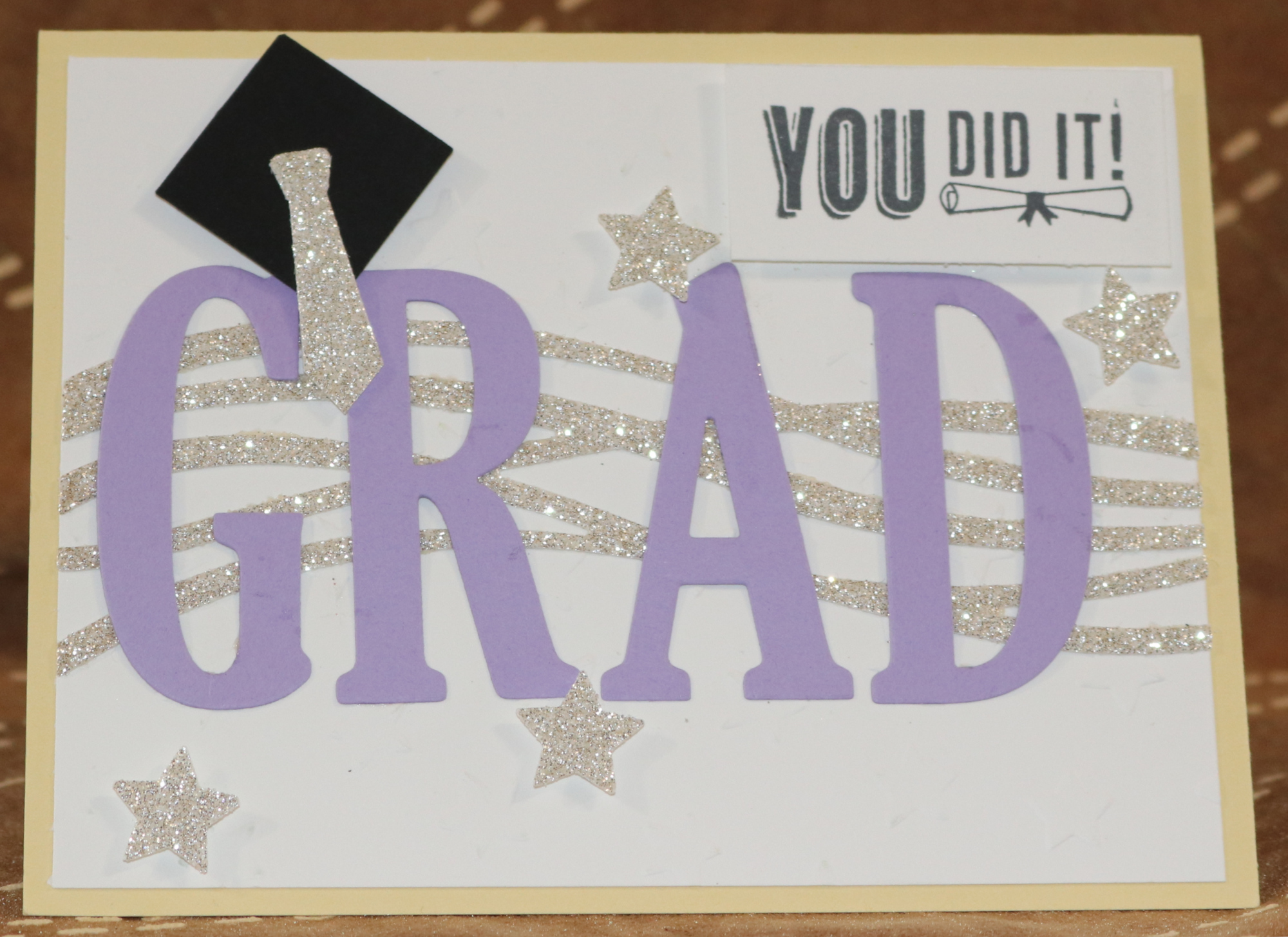 Light Yellow, Lavender, Black, Silver Glitter, White Paper - Star Embossing Folder - Silver Glitter Waves - Lavender GRAD Letters, Stars, Hat with Tassel