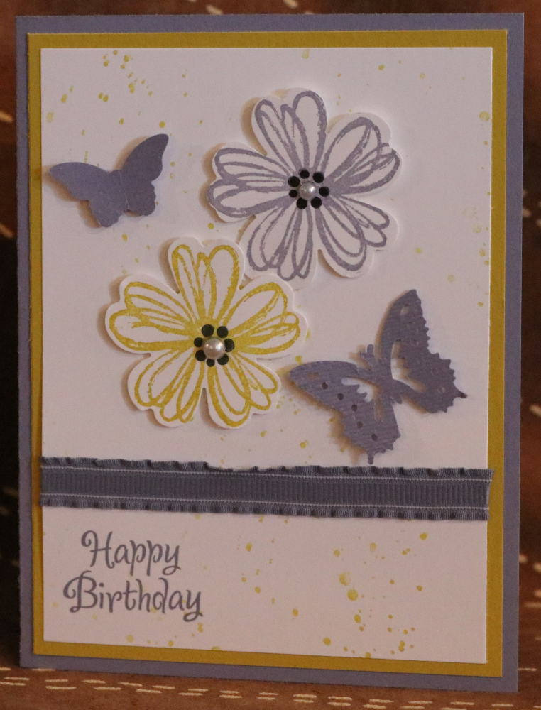 Purple, Yellow, White Paper - Splatter, Flowers, Butterflies, Ribbon