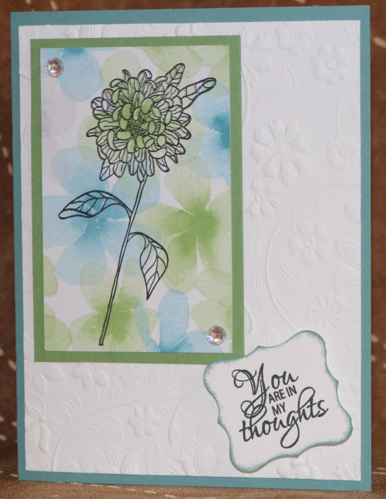 Blue, Green, Watercolor DSP, White Papers - Chrysanthemum with jewels