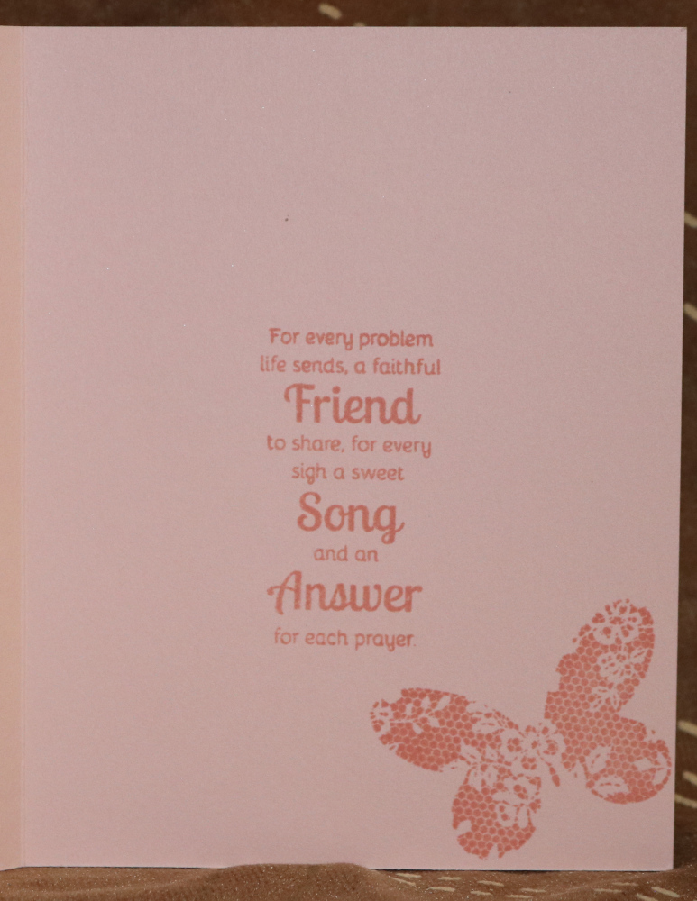 Inside Words - For every problem life sends, a faithful Friend to share, for every sigh a sweet Song and an Answer for each prayer. Butterfly in corner