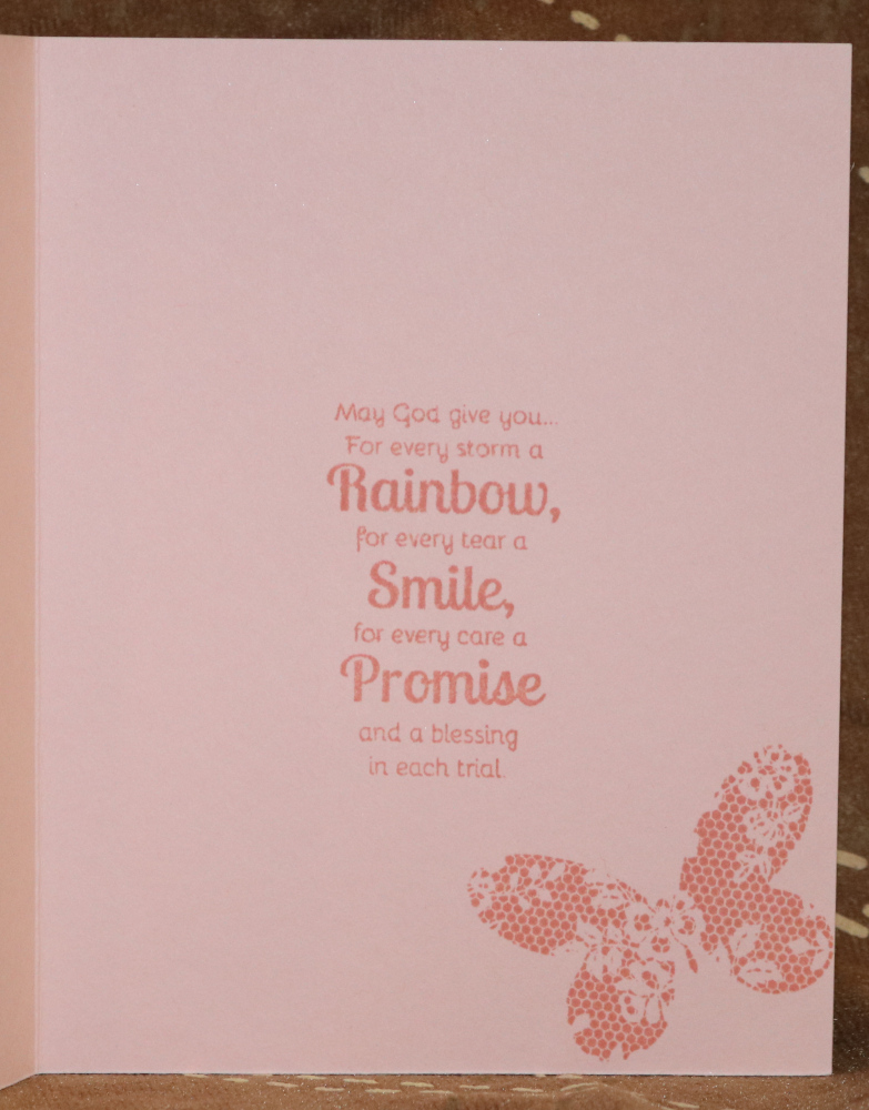 Inside Words - May God give you...For every storm a Rainbow, for every tear a Smile, for every care a Promise and a blessing in each trial. Butterfly in corner