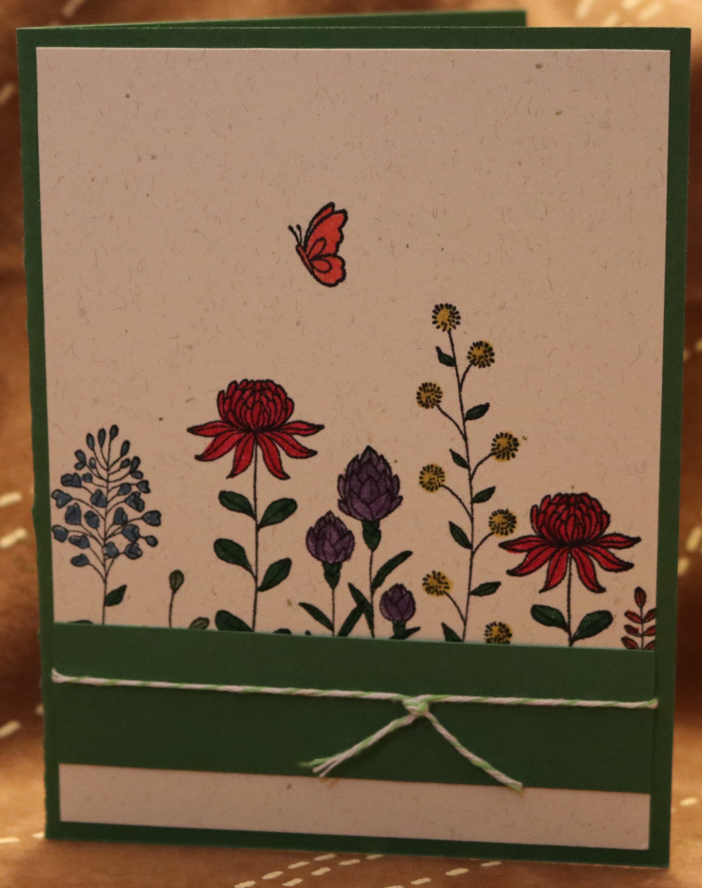 Green, Speckled Cream Paper - Flowers, butterfly, string