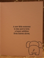 Inside Words - A new little someone to kiss and to love; a happy addition from heaven above. baby elephant in corner