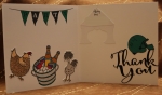 Inside Words - Thank you then there is a Party Banner, chickens around a drink bucket, white tent and football helmet