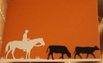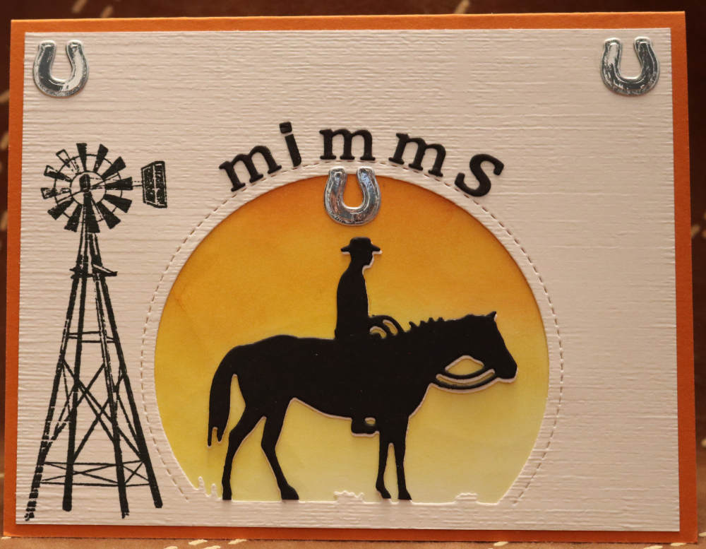 Orange, Yellow, Black, White Papers - Cowboy on a horse silhouette with stitched archway, horseshoes and a windmill