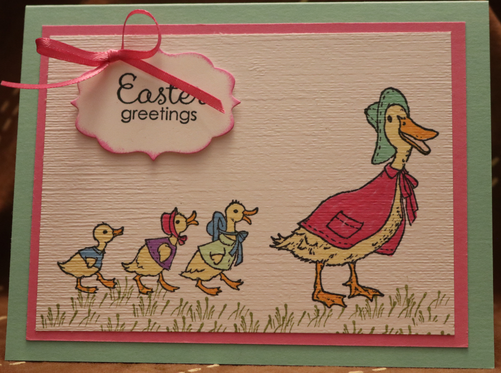 Mint Green, Pink and White Papers - Mommy Duck with 3 babies, Subtle Embossing Folder