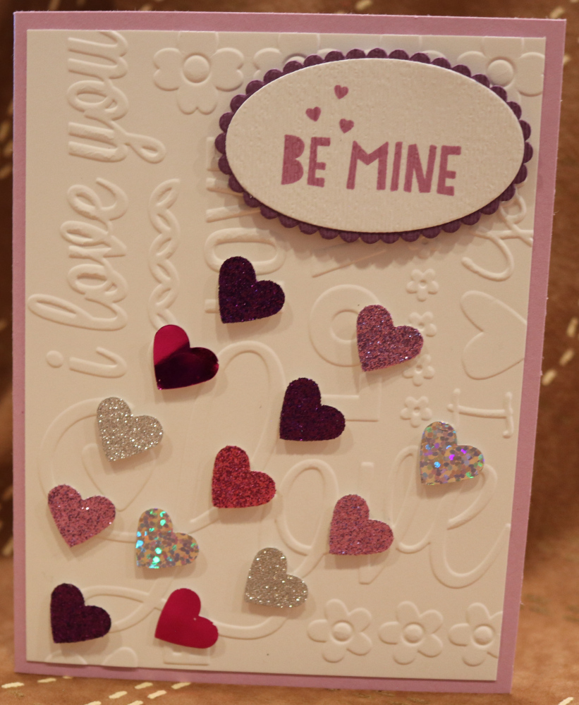 Lavender, White, Assorted Glitter Papers - Love Embossing Folder, hearts trailing up
