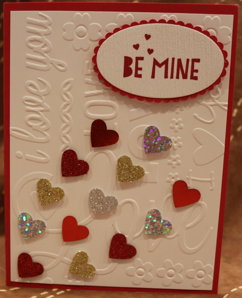 Red, White, Assorted Glitter Papers - Love Embossing Folder, hearts trailing up