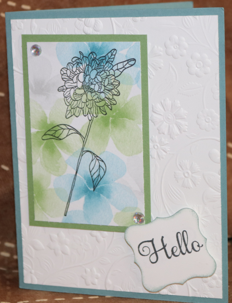 Blue, Green, White Paper - Flower Embossing Folder - Watercolor DSP with Chrysanthemums, Rhinestones