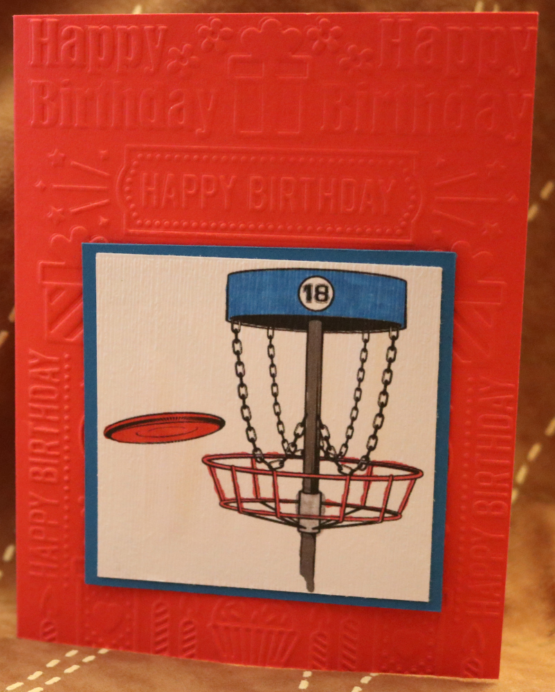 Red and White Papers - Frisbee Golf with Happy Birthday Embossing Folder