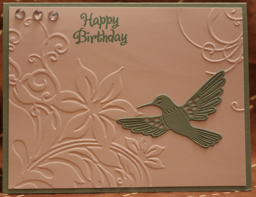 Mint and White Papers - Corner Floral Embossing Folder - Hummingbird Die Cut - wings out, rhinestones