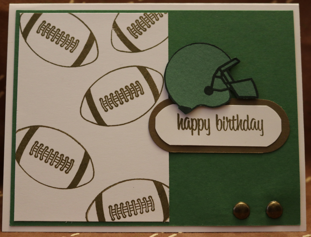 White, Green, Brown Papers - Football helmet die cut and footballs stamped, brads