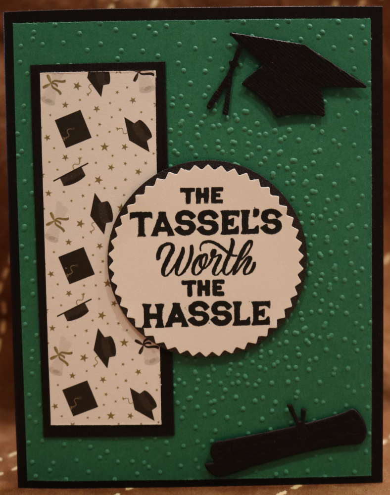 Black, Green, White and Graduation DSP Papers - Confetti Dots Embossing Folder - Hat with tassel and diploma
