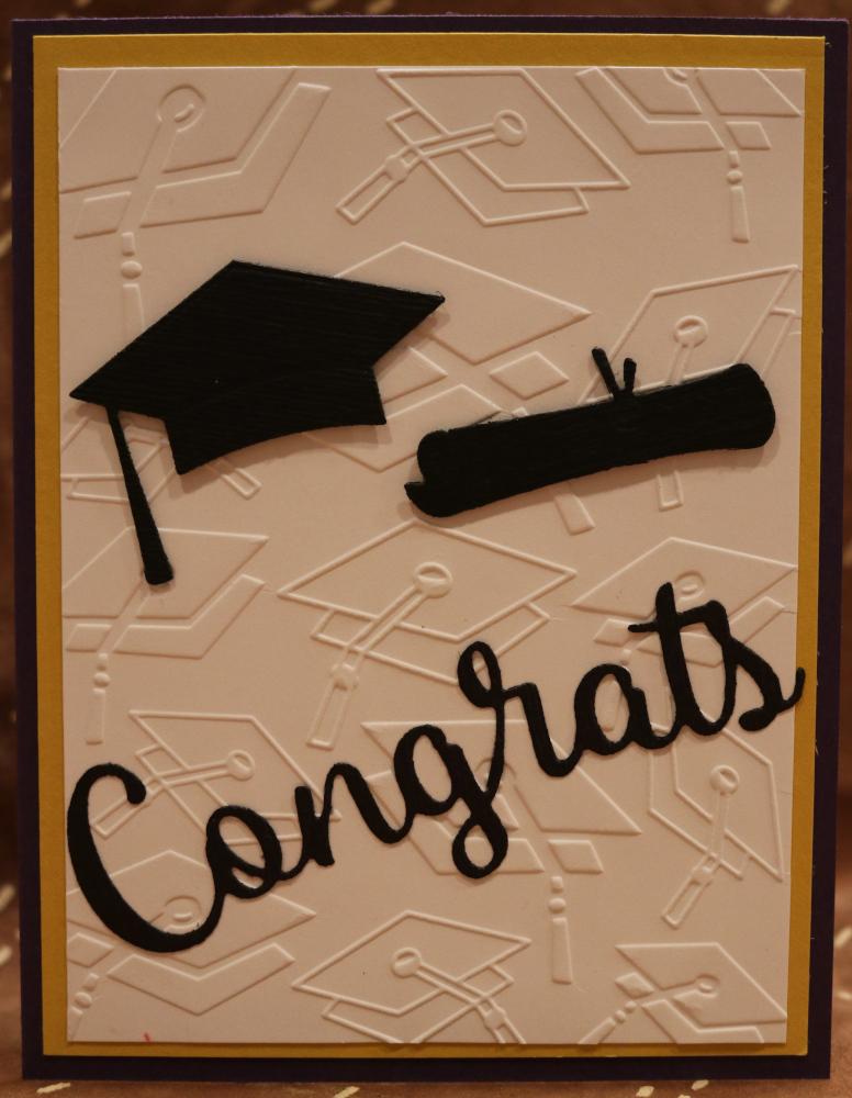 Purple, Gold, White Paper - Grad Cap Embossing Folder - Hat with tassel and diploma