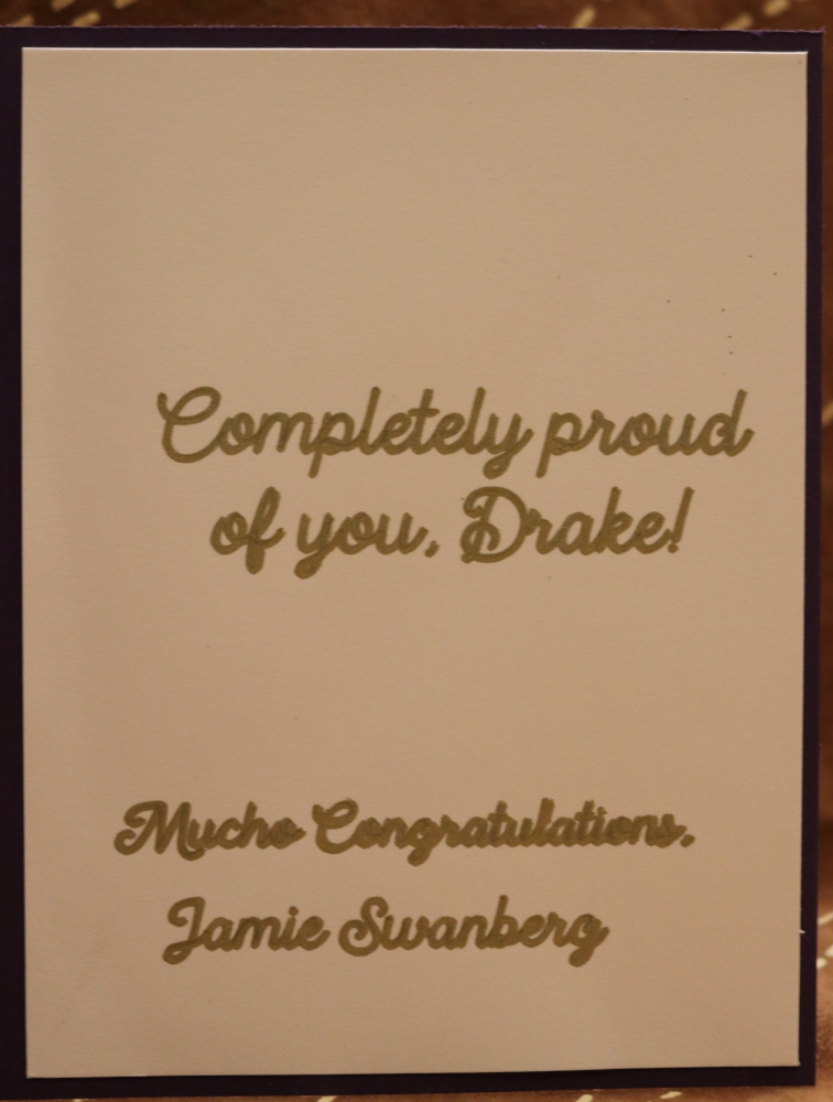 Front Words - Congrats Inside Words - Completely proud of you, Drake! Mucho Congratulations