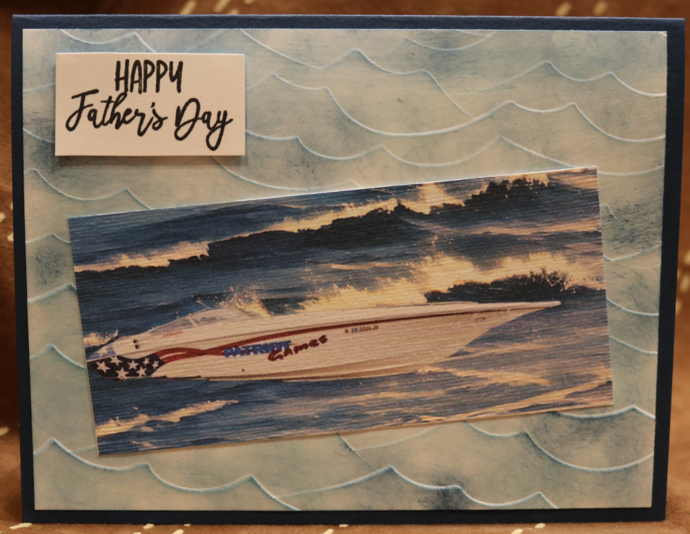 Dark and Light Blue and White Papers - Custom boat on water - Wave Embossing Folder