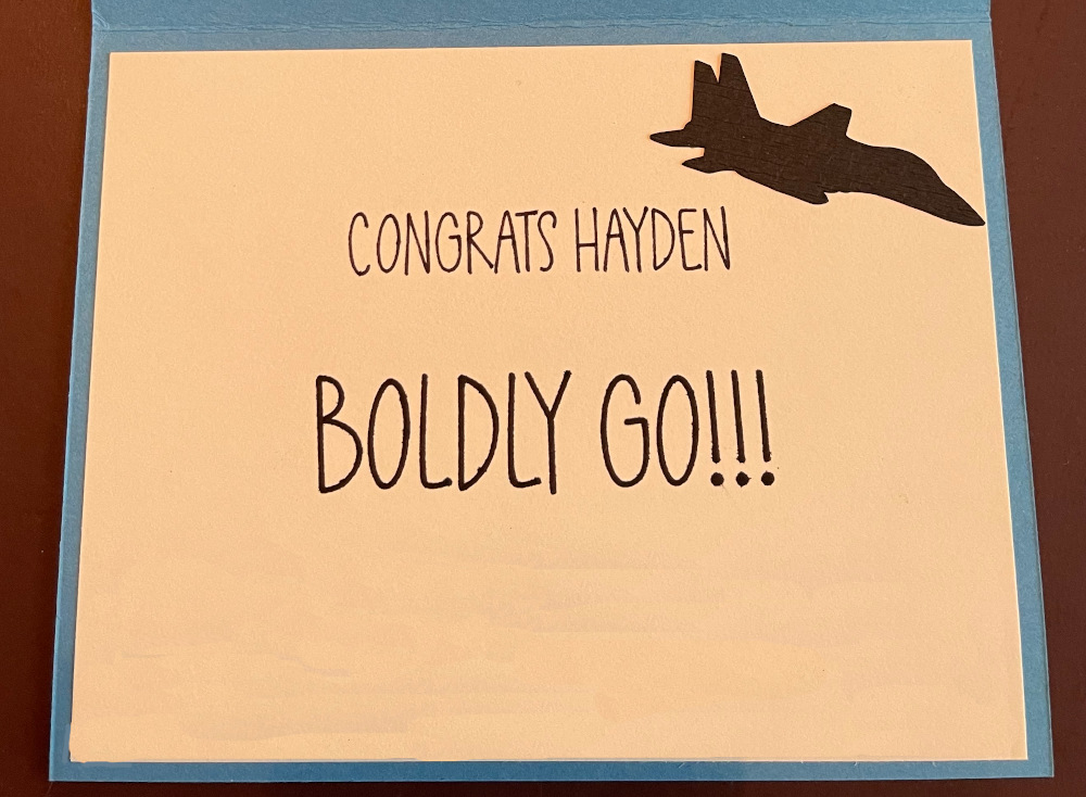 Inside Words - Congrats Hayden, BOLDLY GO!!! printed on Cricut, jet cut on cricut